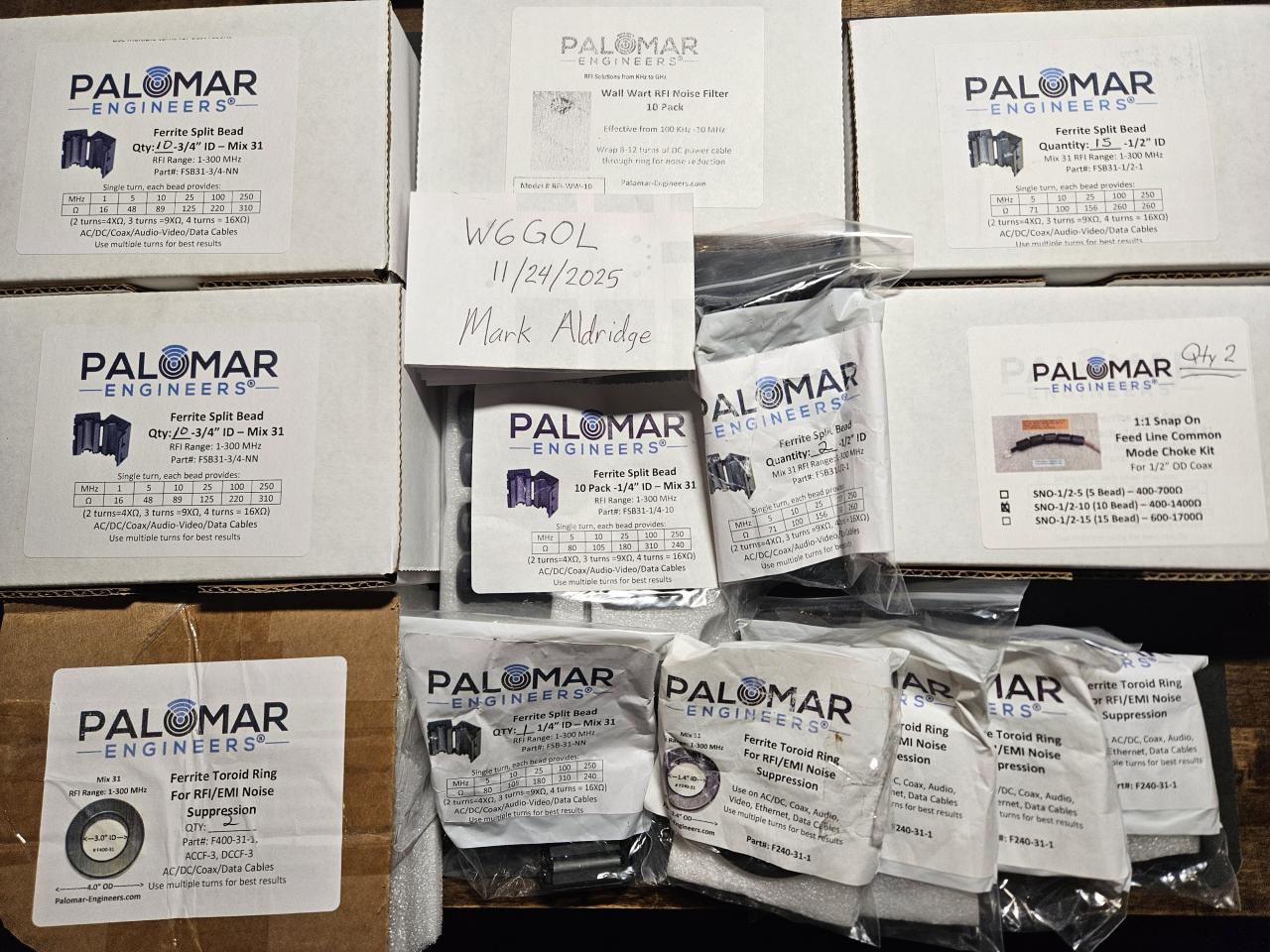 My loss is your gain. I never used these; they are brand new except for one which was used on a coax. These would cost you a total of $406 shipped from Palomar directly. MY PRICE: $265 shipped. Qty 20 FSB31-3/4, qty 17 FSB31-1/2, qty 10 RFI-WW, qty 11 FSB31-1/4, qty 4 F240-31, qty 2 F400-31, qty 2 SNO-1/2