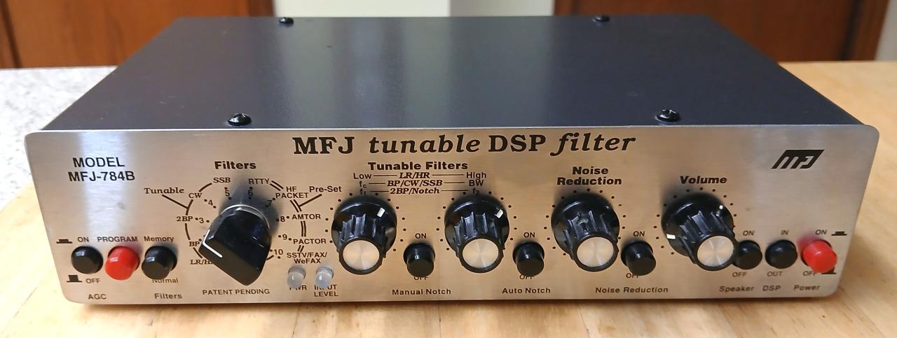 Like new condition MFJ-784B tunable DSP filter with original manual. Works well with radios not having auto notches, NR, SSB or CW filters.