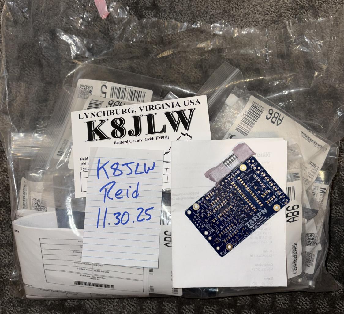 This is an unbuild kit for the Nino TNC 300-9600 baud multi-mode packet radio KISS TNC. You can get more info here https://tarpn.net/t/nino-tnc/n9600a/n9600a_info.html. All of the components should be there as I used the order sheet at Mouser. $25 shipped CONUS. Paypal preferred. Contact me with any questions. Thanks for looking!