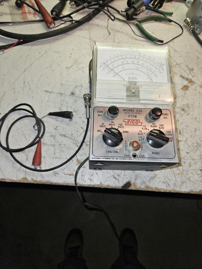 Here is an old Eico 232 VTVM, I checked the dc volts and the ohm meter and they both worked. 100 shipped conus.