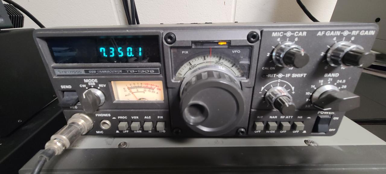 For sale from estate of recent SK ham friend. Kenwood TS-130S 10-80m HF Transceiver, including WARC bands. Puts out 100W 15-80m, around 80W on 10m (as noted in manual 10m input power a little less than other bands. Looks and works good. Has installed optional 500Hz CW filter and also SSB filter. Operates SSB and CW. Comes with desk mic Kenwood MC-50 microphone. Mic in good condition (stand is great, microphone has some paint chips on handle part of mic). Have made a couple of QSO's with good signal and audio reports.