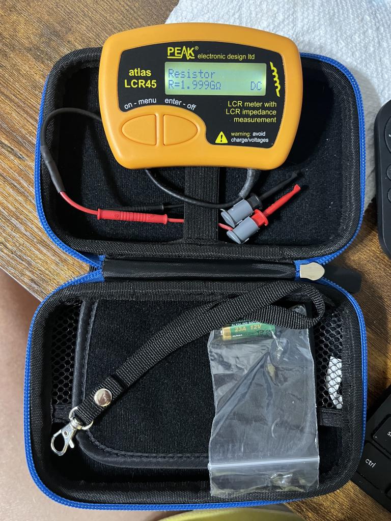 Go to: https://www.peakelec.co.uk/acatalog/lcr45-lcr-impedance-meter.html for full description. Includes LCR45 Passive Component Impedance Meter, carry strap, 2mm plugs/sockets/removable hook probes and 2 Batteries, one installed and one spare. GP23 Alkaline battery. (12V 55mAH). Also included is the Atlas hard storage case. Asking $140 shipped Priority mail, US only, PayPal only (goods and services only). This unit is lightly used. A manual can be found at the website above.