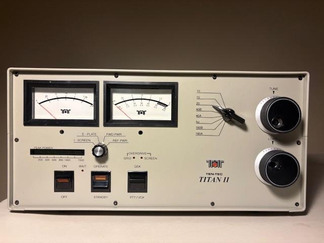 Well I have too many hobbies so the HF Linear Amp is up for sale. It is the rare Ten Tec Titan II Model 416. Everything functions including the 10 meter selection. I fired it up one last time and it put 1500 watts into the dummy load on 20 meters effortlessly. This thing is a beast. Take a look at the pictures. There is no evidence of overtemperature damage. The unit is in excellent condition. There are some light scratches on the top of the enclosure. It weighs about 90 pounds and my preference is pick up or meet up within 100 miles of west Detroit. The only way to ship it is to remove the transformer and tube and ship in three boxes. Not my preference. My asking price is $2500 but I will entertain cash offers. You can reach me at rbzymek at gmail dot com.