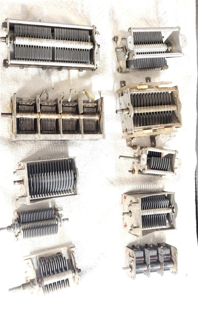 10 Variable Capacitors ranging from less than 100pf to over 500pf. All quality units. $40 shipped US only. Pickup near Sacramento $20. USPO Money order or personal check.