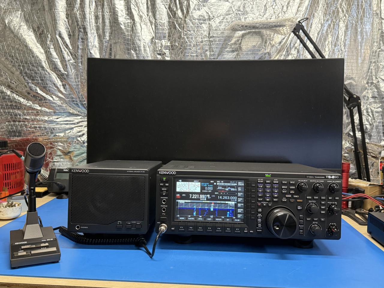 Kenwood TS-890S rig, SP-890 speaker, MC-90 microphone and TS-890S custom cover.