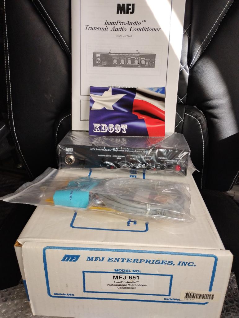 This MFJ-651 is a transmit audio microphone conditioner.It incorporates downward expansion, noise gate, compressor, limiter, low noise preamp with a universal mic interface, headphone monitor and a PTT aux housed in a RF proof case.