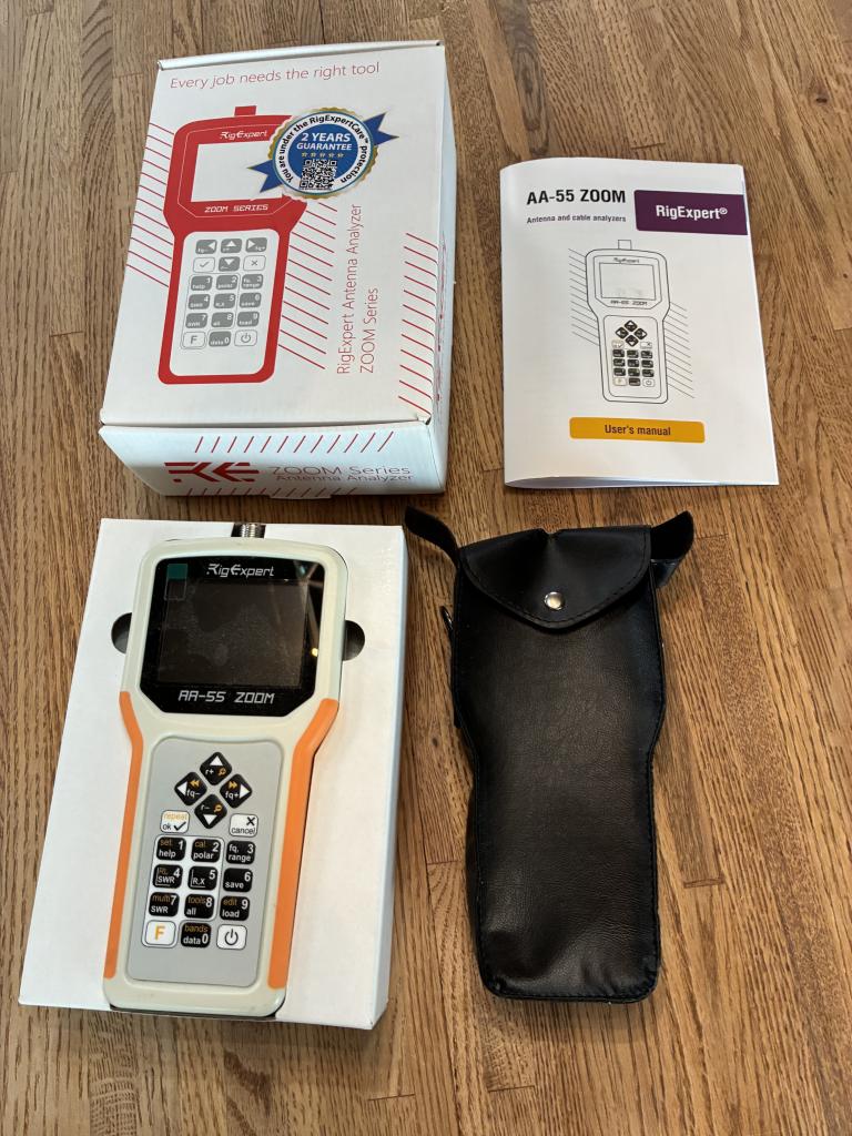 My original unit was missing for 1 year. Gave up looking. Bought 2nd unit. Original was found one week later. OOPS! This antenna analyzer is brand new in the box and carrying case and manual. Does not come with batteries. It has never been out of the box other than to take the picture. Plastic screen protector is still in place.