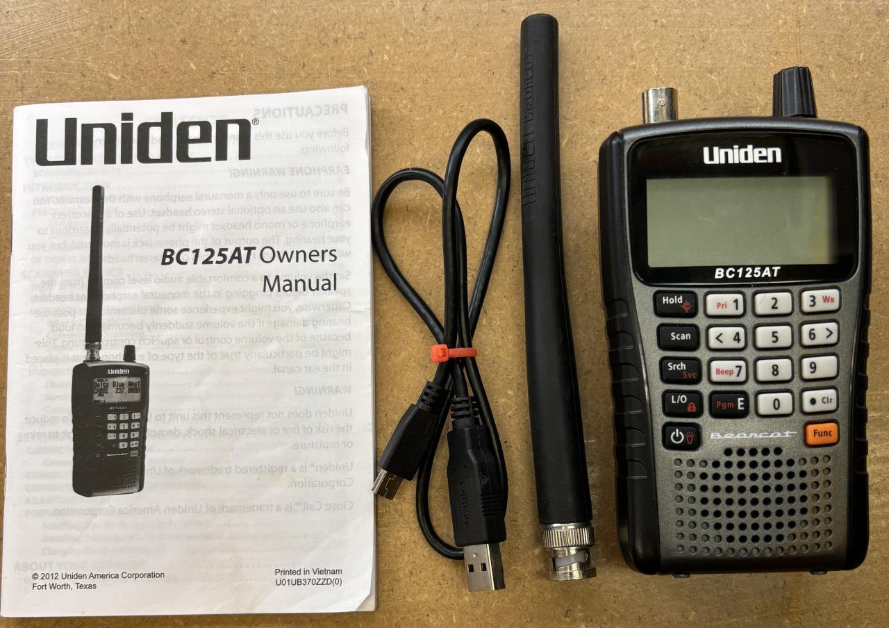 Uniden Bearcat BC125AT Handheld Scanner in like new condition. Owner's Manual, Antenna, and charging cable included.