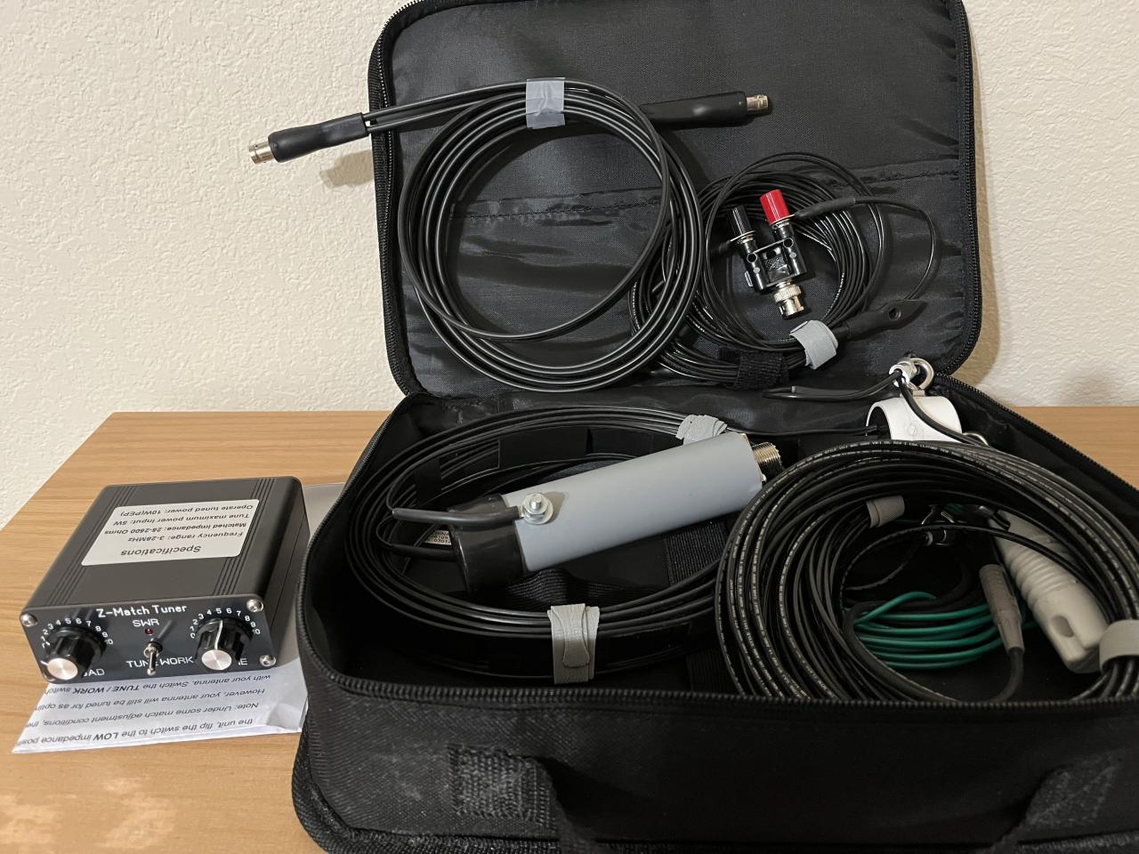 I got two antennas by N9SAB. One is a mini G5RV w/balum and the second is a nano G5RV, both have ladder line. The tuner is a Z-MATCH for qrp as new with manual. Will come in a neat carry bag, plus some high vis paracord