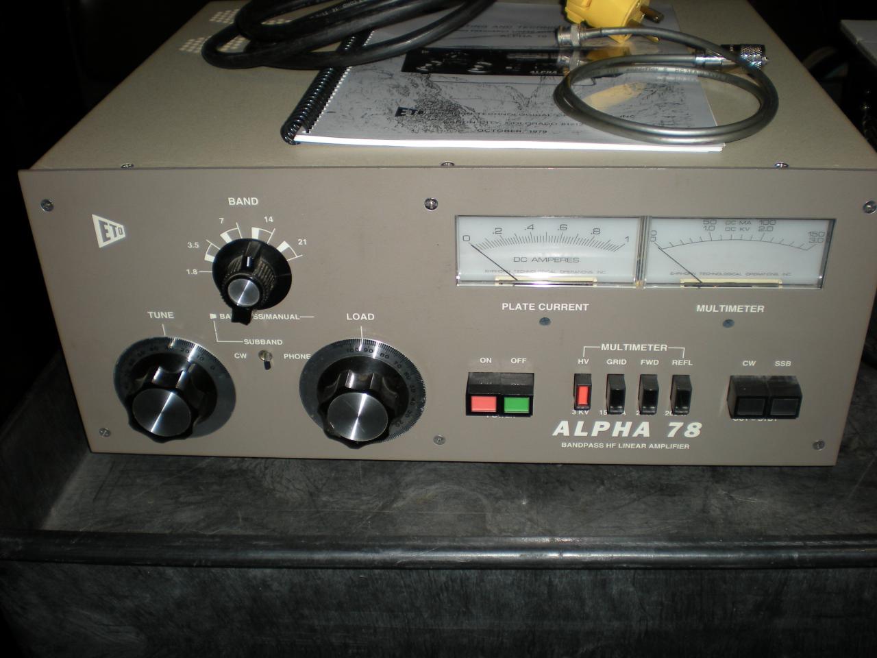 ALPHA 78 HF AMP. REMOVED FROM SK WORKING STATION. NO DENTS OR OTHER DAMAGE. WIRED FOR 220. NON-SMOKE SHACK. $1300.00 OR BEST OFFER.