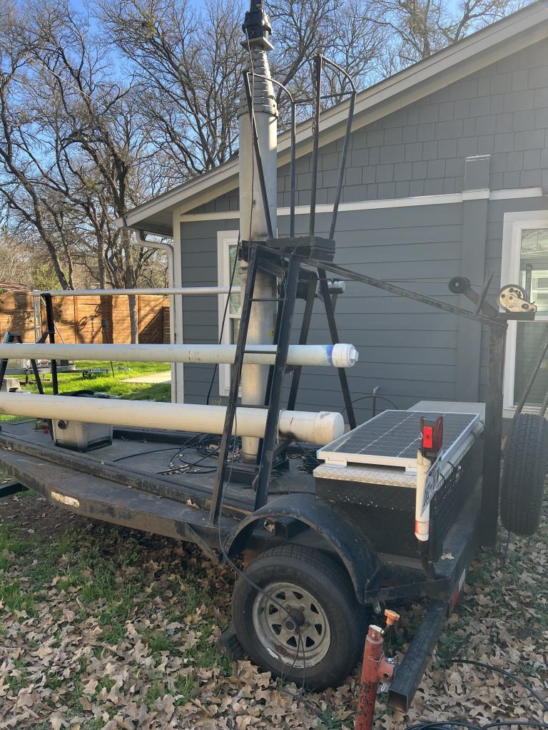 Please, read first. The antennas, rotator and mast are not included. It weighs 1370lbs and is titled and registered in Texas. It is used regularly at my QTH. The Wilburt mast is pneumatic and extends to approx 62'. The mast tilts down for access and transport. It comes with the original compressor. I have added battery, lights, solar, new tires and a new hitch. Two sets of stabilizers. There is an HF 3 band (10,15,20) dipole beam included. The elements are in the larger tube and the smaller tube is great for other antennas. Great small footprint for restricted areas.