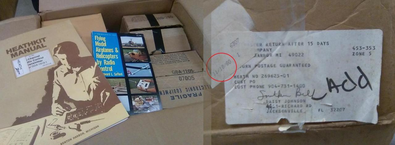 Here is an unbuilt Heathkit RC control model#GDA1919-1. In original shipping box, the individual boxes have been opened up for a look see by someone, but all is complete as shipped from Heathkit in 1980, and if any discrete components are missing, then Heath did not pack them. This is a 72Mhz unit, so still legal to use. Make an offer on this, and add $30 for shipping. Paypal, USPS MO, or personal check that will be held until it clears before shipment.