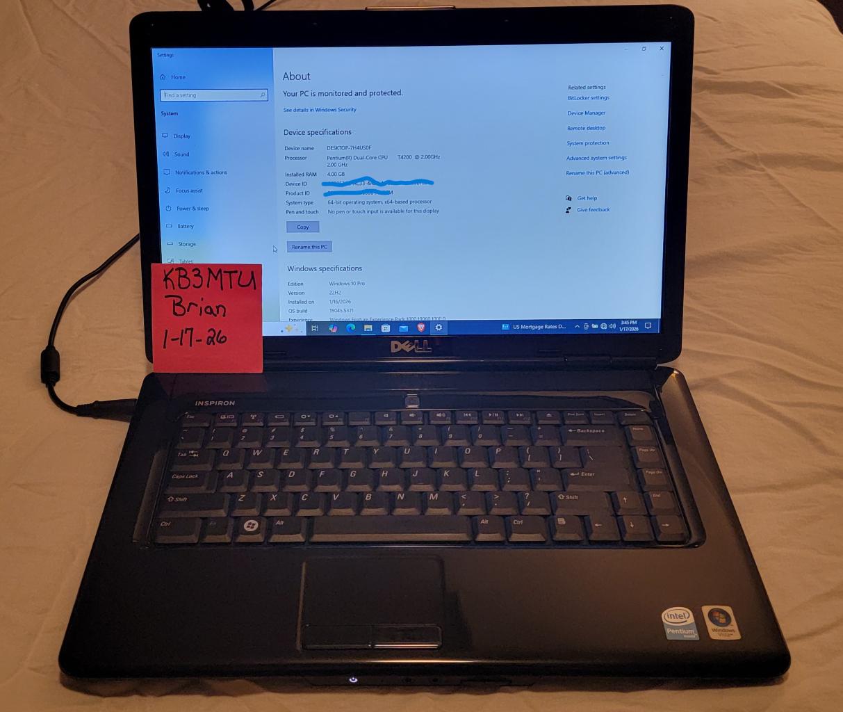Dell Inspiron 1545 Pentium T4200 at 2.00GHz 4GB RAM 1TB SSD Windows 10 Pro