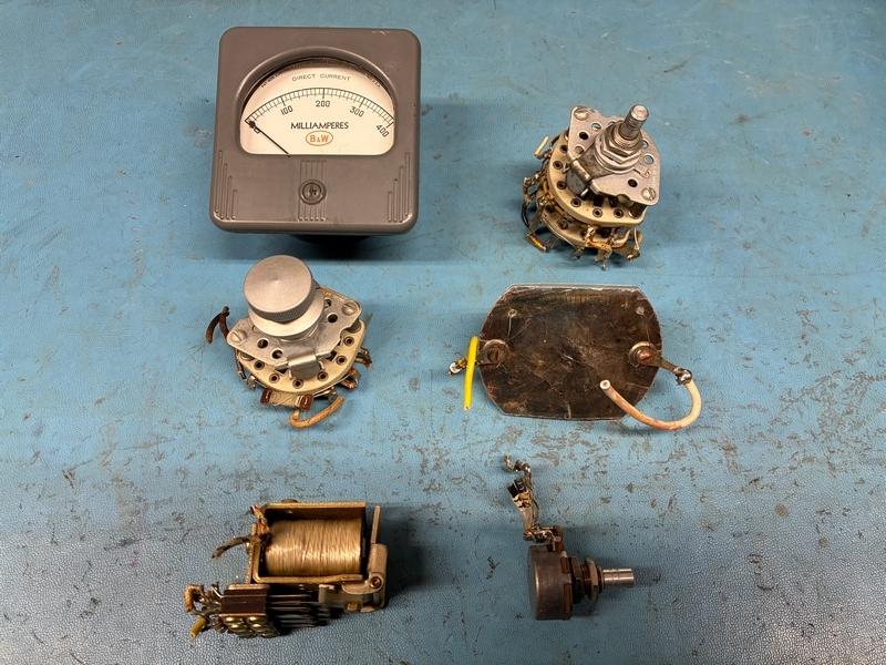 Panel meter, meter switch, function switch, audio gain pot, R25 Special Resistor, and relay. The meter has been tested and the relay works. Sold as is. No returns. $32 Shipped CONUS.