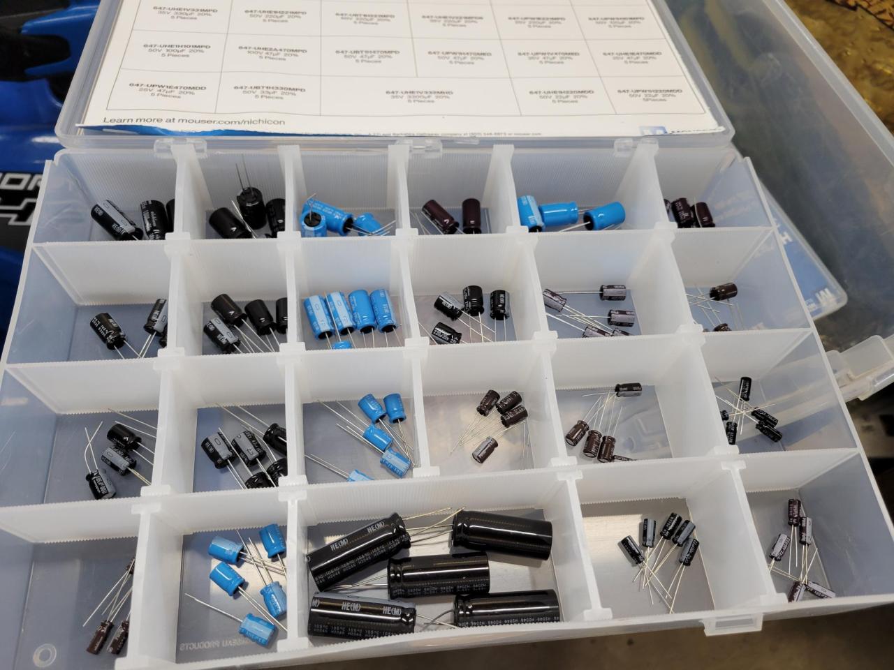 New Large selection capacitor kits. Purchased for project. High voltage radial aluminum electrolytic caps. $100 each. Two HE BT PW series 370 series, 23 values. $100 each plus shipping. Many pics of the box with all values labeled.