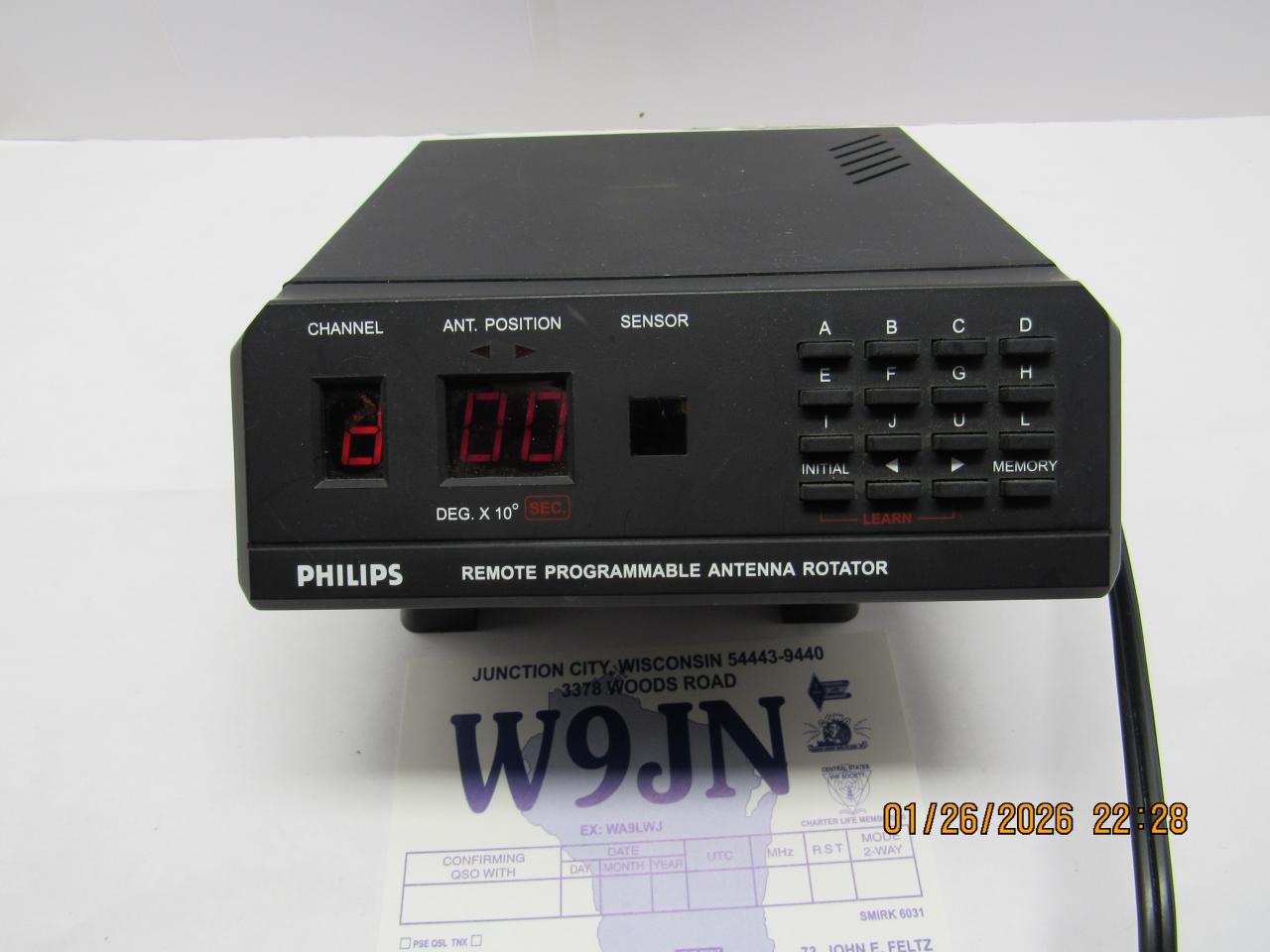greetings: I have forsale the Phillips AR 500 rotor controller SDW1850/17. It also is known as the Hygain AR500. It has 12 programable memories. I tested it against a rotor that has the same voltage. It appears to work OK. Info can be seen on the web. Very clean. One additional pix of the underside. $25.00 plus all shipping.