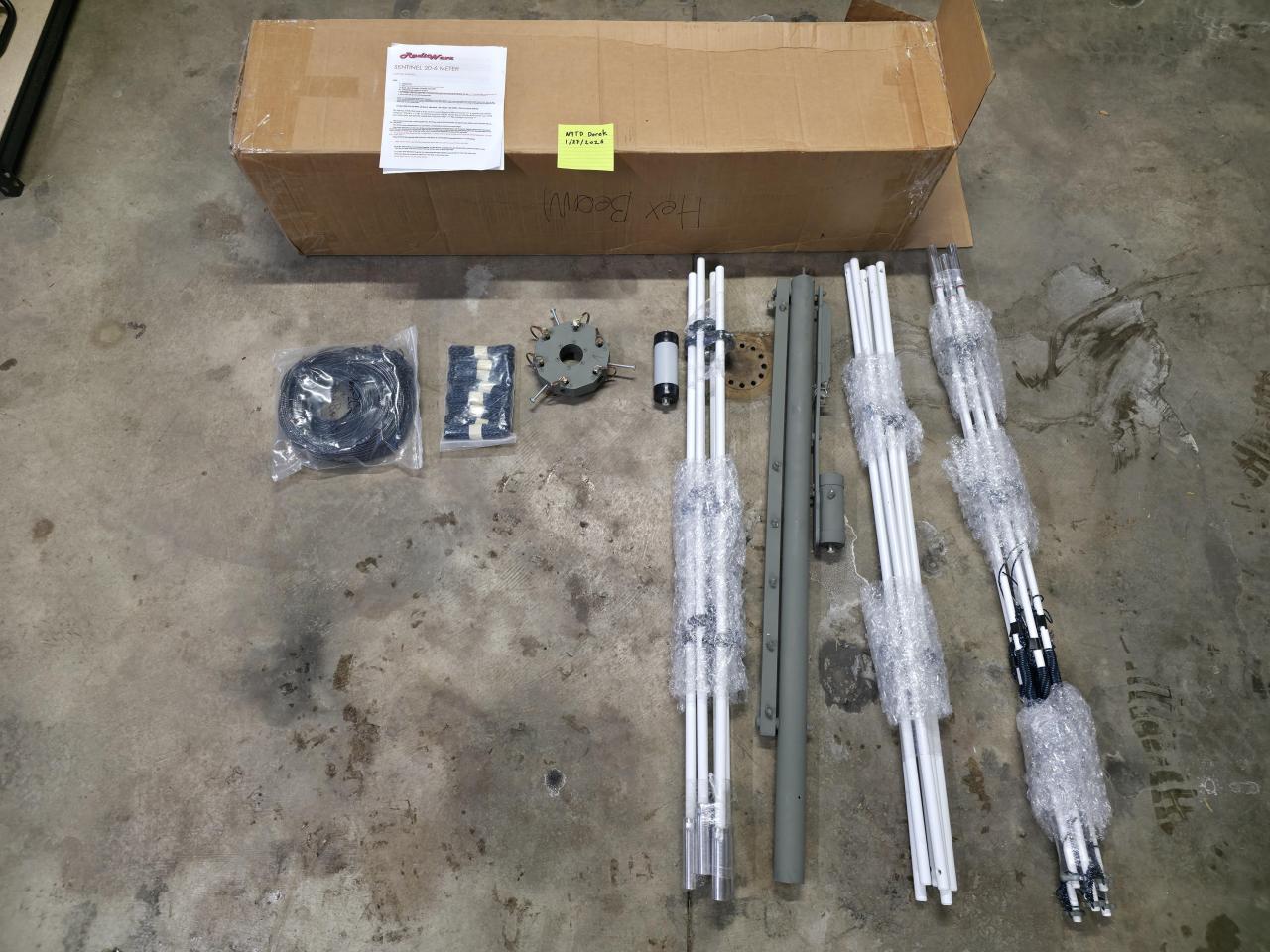 This is an unused Sentinel Hexbeam from Radiowavz. It is a standard 6-20m hex that has an additional 30-80m broadband element with a second feedpoint. https://www.radiowavz.com/product/sentinel-hex-beam/69