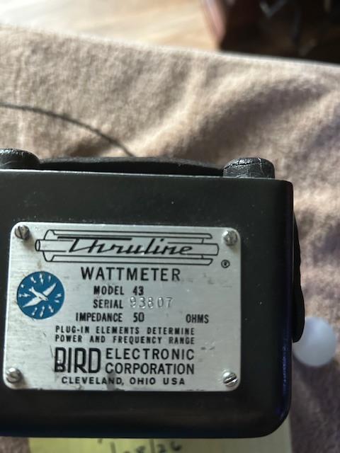 BIRD 43 watt meter. Hammered black finish. s/n:93807. Has Matt Watts Peak kit installed. Has NM3E light kit installed with power supply.