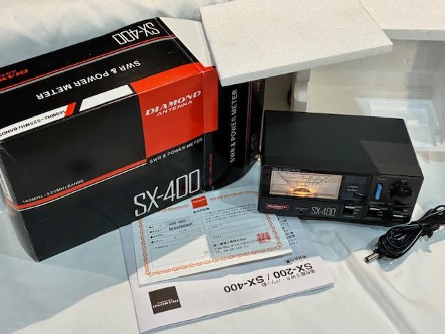 Offered is a brand-new Diamond SX-400 Wattmeter. I took this meter in trade. The meter has a frequency range of 140 to 525 MHZ. Included is a copy of the user's manual. This meter has three power ranges (5, 20 and 200 watts) in both average and PEP modes as well as an SWR FW/REV function. It has a lighted meter face. Included is the meter, instruction manual, 12-volt connection cable and all of the original packaging. Please contact me for additional pictures/information. Priced at $105.00 or reasonable offer. Payment by money order or personal check. I do not utilize PayPal or other electronic transfer applications.