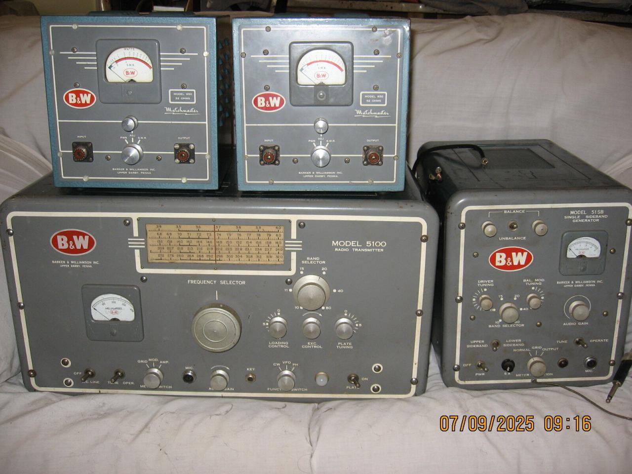 FOR SALE B&W 5100, SSB515B, TWO MATCHMAKER MODEL 650 METERS, MANUALS ALL UNMODIFIED TO MY KNOWLEDGE. NOT POWERED UP FOR AT LEAST 30 YEARS, OUTSIDE CONDITION GOOD. INSIDE APPEARS ALL INTACT. ADDITIONAL PHOTOS AVAILABLE. WILL NOT SEPARATE/SPLIT. WILL BRING TO DAYTON HAMVENTION 2026 AND CAN POSSIBLY MEET EN ROUTE BETWEEN NORTHERN VA, THROUGH SW VA, WEST VA, INTO OHIO ON I81, I64, RT 33. REDUCED $300 NEGOTIABLE! SERIOUS BUYERS PHONE CALL DISCUSSION WELCOME. CHARLES "ED" K5OF