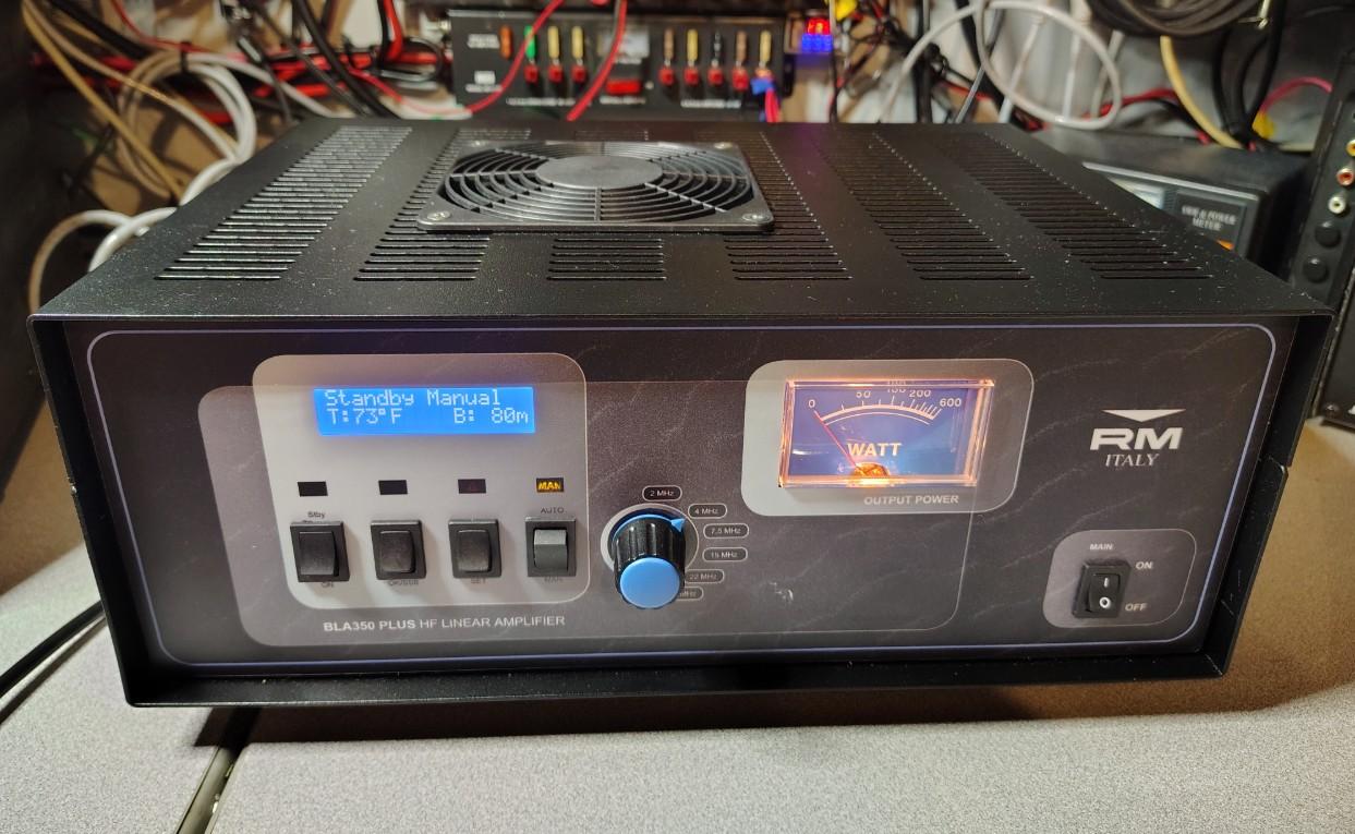 The RM Italy BLA350 Amateur Radio Amplifier covers the 160 thru 10 meter Ham Bands, and with 12 Watts or less drive it delivers up to 300 Watts output. It is the perfect match for most QRP rigs and is not designed for 100 watt radios. The matched pair of MRF150 MOSFETs are protected against overdrive spikes, high VSWR, and high heat sink temperature. I've used it with an FT-818 and with about 7 Watts of drive delivers around 200 Watts output on 40 meters. The BLA350 samples the RF input and can set itself to the band you are operating on. The band can also be set manually from the front panel. The internal, transformer-type (low-noise) power supply is rated at 110 Volts at 8 Amps max, so you can easily power this amplifier from a standard AC outlet. Price is $750 shipped (CONUS). The package will also include the user manual and power cord. I accept PayPal (please add 3%) or USPS Money Order. Thanks for looking!