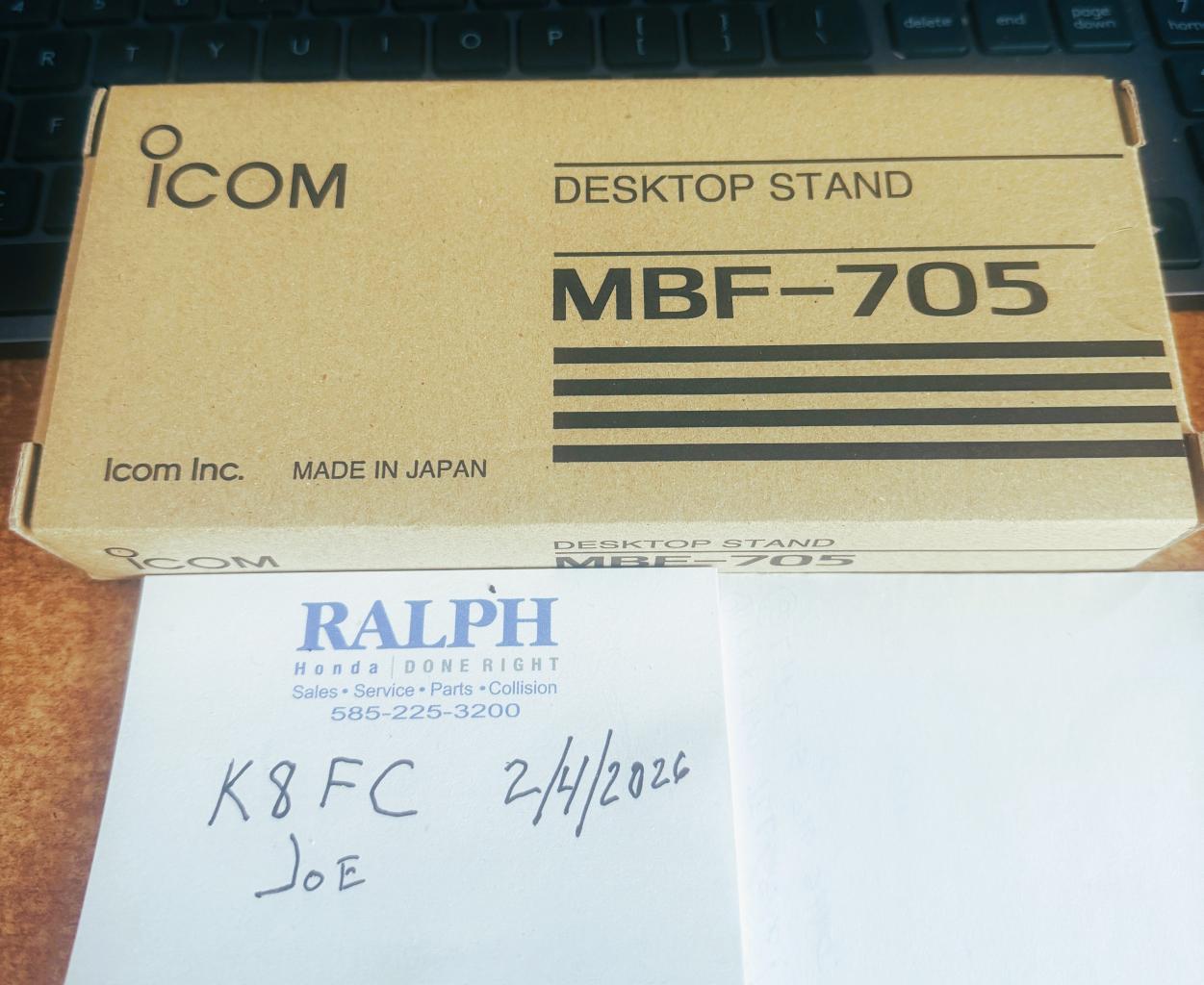 This is a new and unused Icom 705 desk stand. This stand mounts to the bottom of the IC-705 and positions the radio on a convenient angle for desktop operation. This item is new and unused. $40 including free shipping to the CONUS. Paypal, Zelle or what ever you prefer is fine.