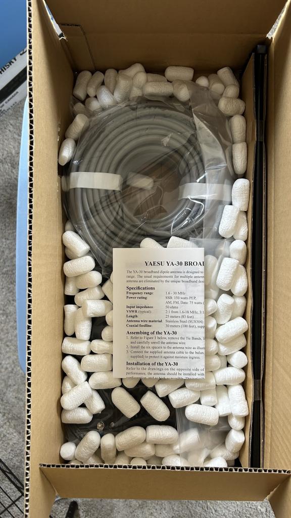I have a new in the box, Yaesu, YA-30 1.8 - 30 MHz Broadband Dipole Antenna - 30M / 100 Feet of Coax with UHF Male PL-259 Connector. Plans have changed at this qth so will not be using it. I will ship in the CONUS for $225.00 Price IS FIRM. Paypal is fine or personal check. If you are reading this ad, it is still for sale along with all details.