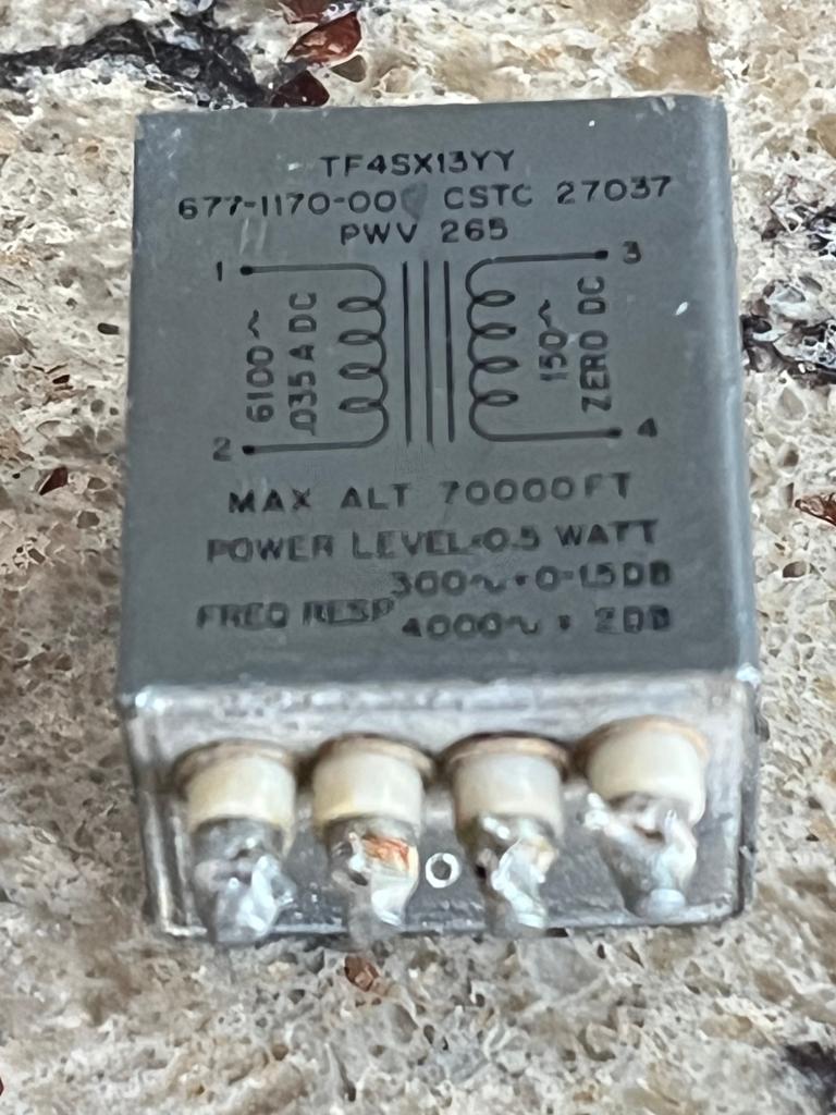 I have available a small audio transformer. Physically it measures 1-5/16 inch high (not counting the terminals) and 1-1/8 wide and 7/8 deep. The terminals stick out about 5/16. The specifications are in the picture, but if they are difficult to read, the input side is marked 6500 ohms with a DC max of 35 ma, and the secondary is 150 ohms at ZERO DC. The power handling is 0.5 watts. The frequency response is 0-1.5 dB at 300 Hz, and +/- 2 dB at 4000 Hz. The 2 winding have been checked for continuity. $15 plus shipping in the USA.