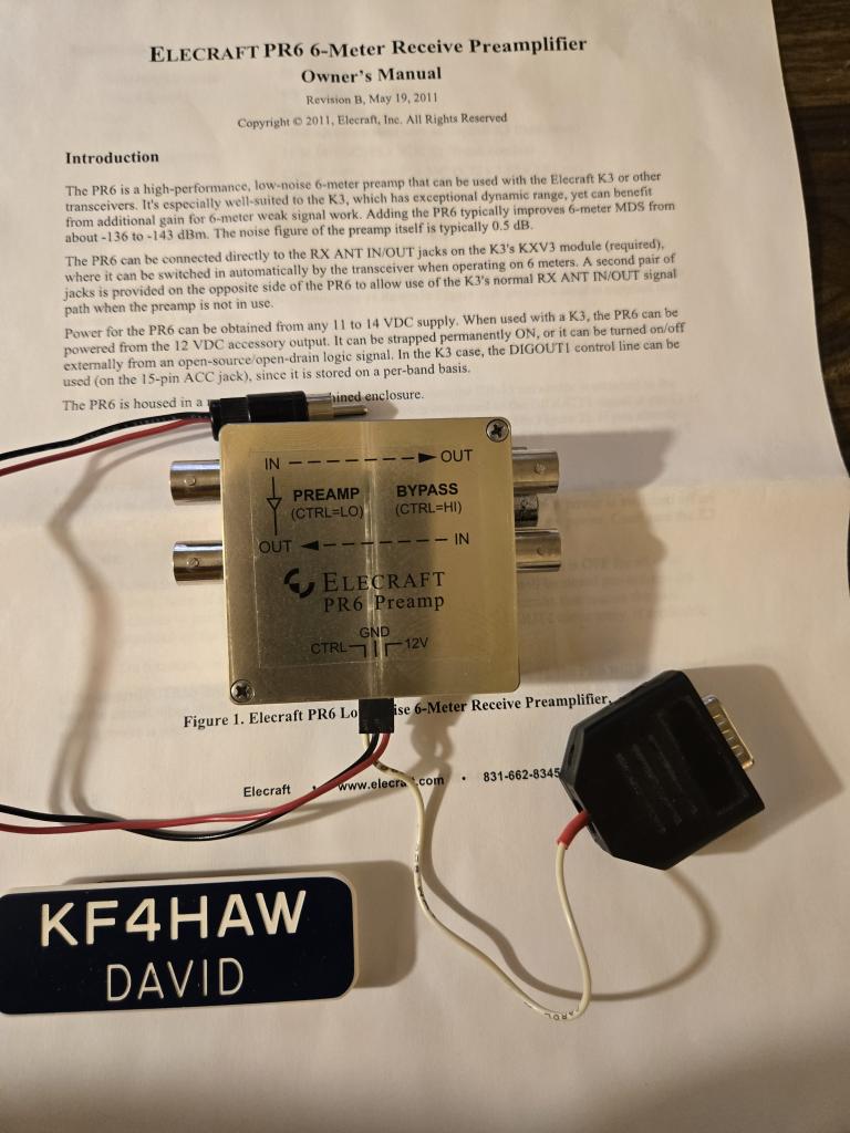 This Elecraft PR6 6-Metet Receive Preamplifier will be shipped to the lower 48 for 50 check or USPS MO.