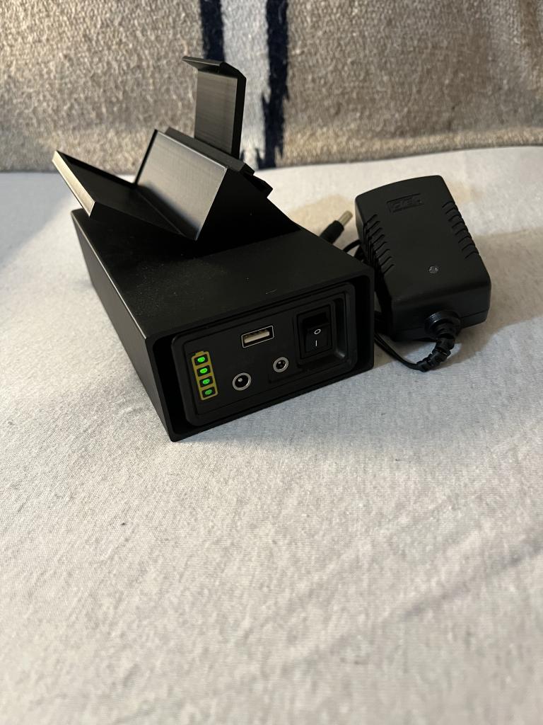 I have one holder w/battery. It was made by DreamLabNC and it has included a Talentcell LifePO4 battery w/charger. Model LF4100 6ah. I never had the time to use the setup. Bought new in October 2025.