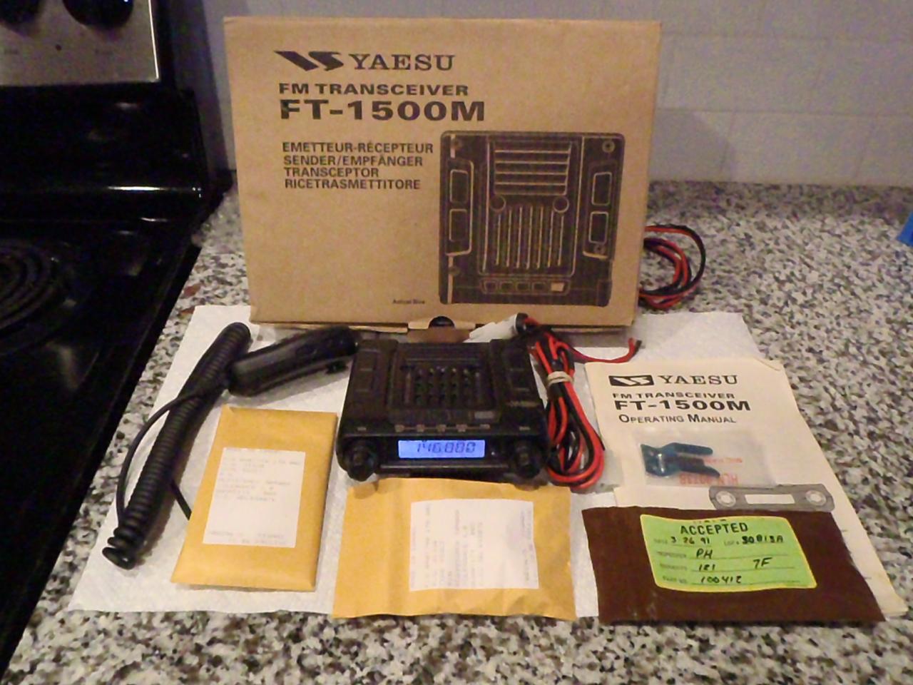 SOLD PENDING....FOR SALE: YAESU FT-1500M 2 METER RADIO. Comes with box and looks to have everything that came with it. Nice small size 2 Meter radio. I have been using it in my car. Serial # 0E050505. USA Sales and Shipping only. NOW ONLY $100 !!!!!!! Shipped. USPS Money Order or Zelle or Check ship when it clears. Sorry no PayPal. Sold as is no return. My address is correct on QRZ but my Apt # is 310 not 130. I have photos on my phone if you want to see them just ask. Thanks for looking 73.