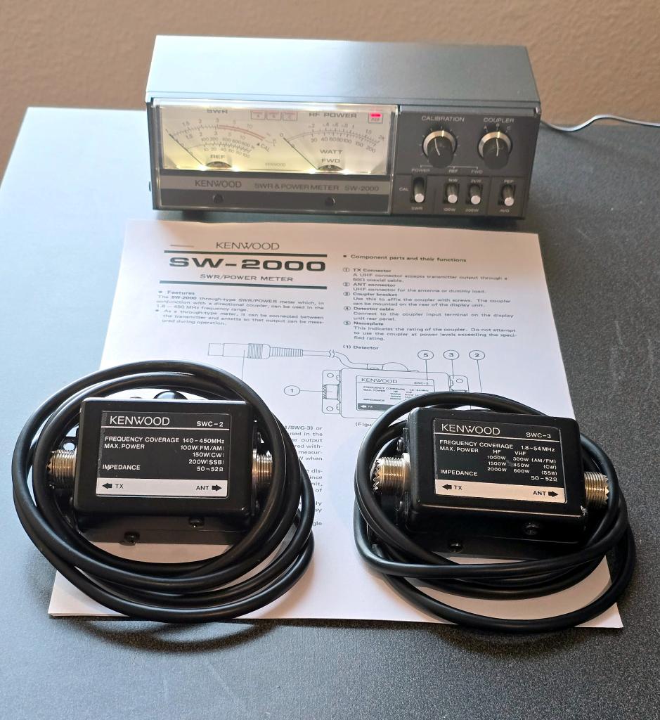 For sale is my Kenwood SW-2000 SWR/power meter with both a SWC-2 (140-450 Mhz) coupler and a SWC-3 (1.8 - 54 Mhz) coupler. All items are in excellent condition (see picture) and work properly. Everything comes complete with instructions and the power cord. The price is $175.00 plus shipping. I accept a US Postal Money Order, or PayPal for payment.(buyer pays the PayPal fee) Please let me know if you have any questions. Thank you. Kurt - KE9N