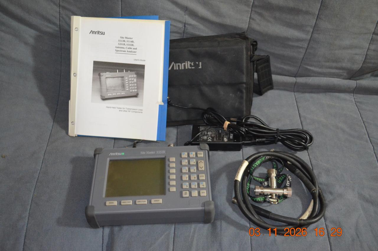 Anritsu site master S331B with calibration tool and cable for sale. Unit works and is in good condition. Manual,Case and power supply included.Battery is bad, but can be replaced. Price is $425 plus shipping. estimate shipping USPS with insurance $45. Unit is sold as is. Contact prefered text or phone at 9188304727. PayPal or Zelle for payment perfered