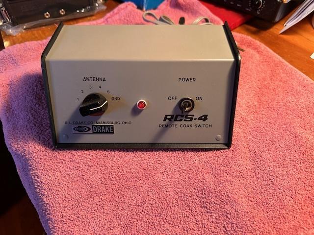 Up for sale is a Drake RCS-4 Remote Coax Switch. It accepts up to 5 coax fed antennas on one main coax feedline ... maximum 2000 watts PEP up to 30 MHz. Works off 120 VAC at 50 watts.