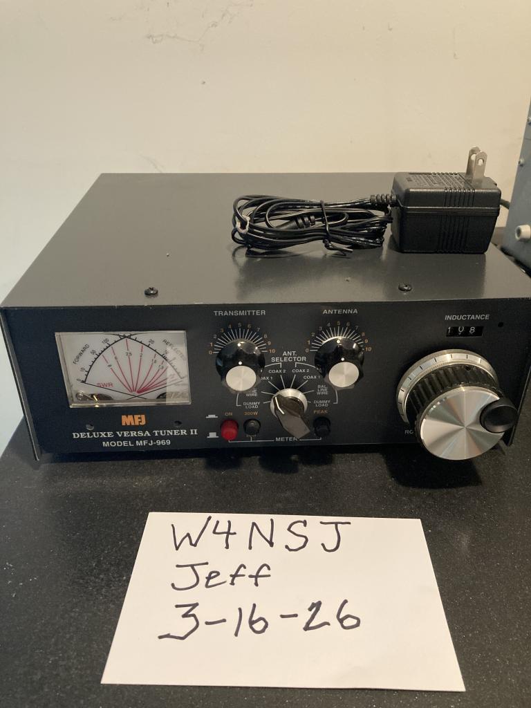 DELUXE VERSA TUNER II MODEL MFJ-969. I only used it once to test, then stored it as a backup. Like new, but I unfortunately do not have the box. I will boxed securely. $200 shipped, or I can meet you in Charlotte for $175 . No returns due to parts swapping. Payment by Venmo, Zelle, or PayPal. Take your pick. But if PayPal, you pay the fees. My email is good on QRZ if you want to buy.