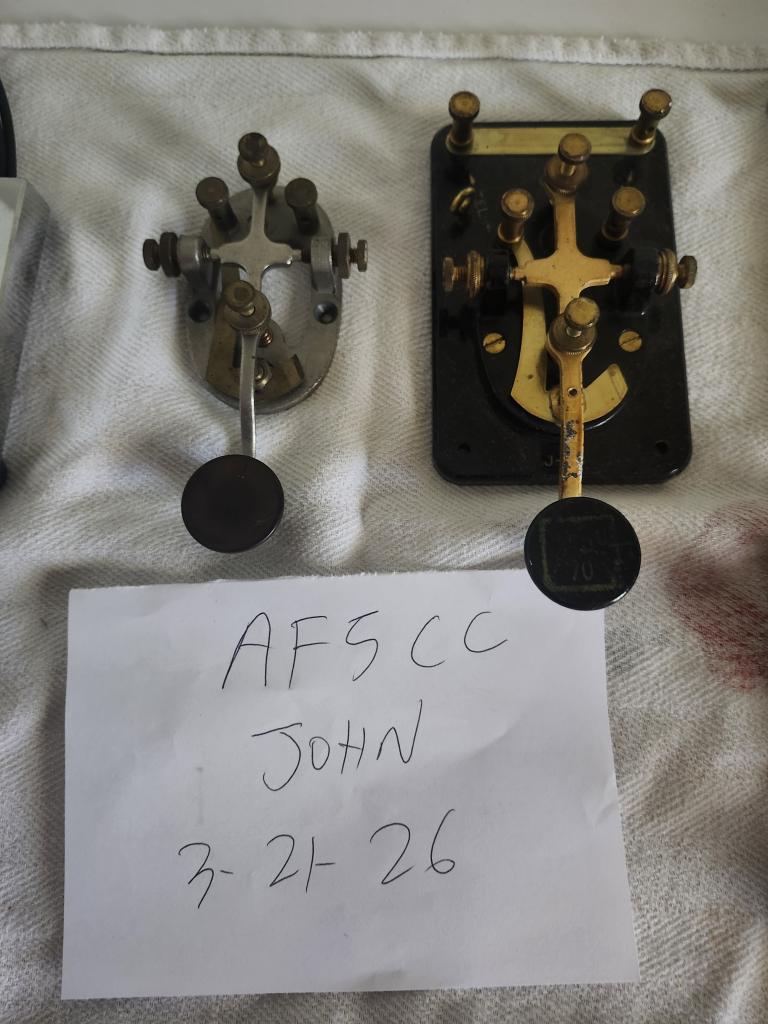 From a local estate I have a Nye Company straight key. Not sure of the model number but this key is beautiful. Looks brand new. It has a square metal base, and is brass with very nice movement. Has a 1/4" mono plug attached to it, ready to hook to your radio. Asking $75 shipped.