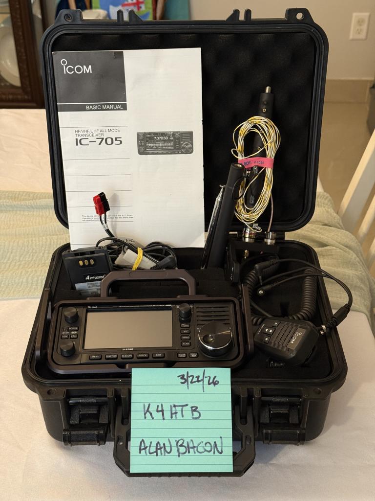 I am the second owner of this particular IC-705 and have had no bad experiences with it. I acquired it with the Windcamp RC-1 and the Comet HFJ-350M antenna, and have also added the Peovi PV705TC to keep the face protected on my roughly 3 attempts to do POTA. While I don’t have the original box, it will ship in the hard plastic case shown. I will also include an aftermarket battery in addition to the factory battery that no longer works for me but perhaps you are able to revive.