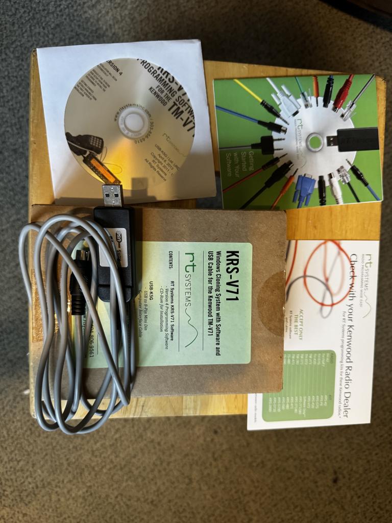 Programming cable and software. This if for Kenwood TM-V71 transceivers. All included as pictured. Price is $35 shipped in US.