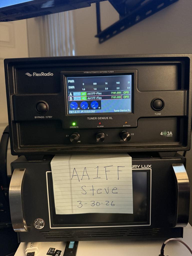 Selling my Flex Tuner Genius. Purchased new in December of 2025. This tuner is 100% functional and appearance is perfect. These are out of stock at Flex right now. Only reason for selling is a SO2R does not fit my needs right now and will purchase a 1x3 tuner. Price is $2100 shipped. Payment via Zelle. You can contact me here and send me an email. I'm good on QRZ.