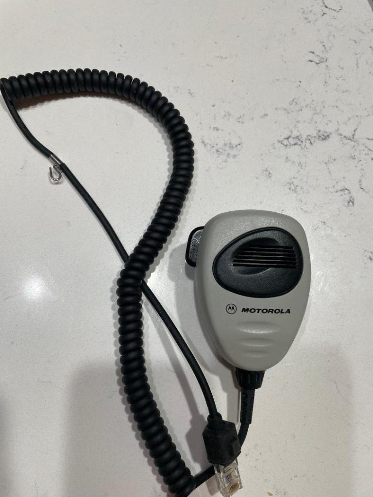 Motorola hand mic with 8 pin modular connector as used on the M1225 radios and similar. VGC $30 shipped conus