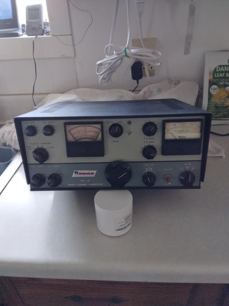 SWAN 240----Good condition, 4 new tubes last year, Puts out 72-75 watts in the "tune" mode on 40m, where I use it with good audio reports.$175 shipped conus, no offers or returns, as is sale.Pay-Pal or US postal money order. Requires a 117xc power supply/speaker. 1 more photo on request. Tnx.