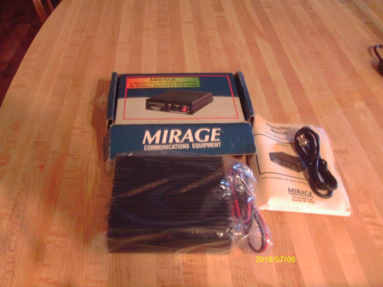 For sale is a Mirage B-34-G two meter amplifier. This is 1 to 8 watts in and 30 to 35 watts out. This is essentially new in the box. It is still in the plastic. I would like $70 shipped priority mail. It will cost about $20 to ship it so really the price is $50 if you can come and get it or meet somewhere in Upstate South Carolina. I can take pay pal!