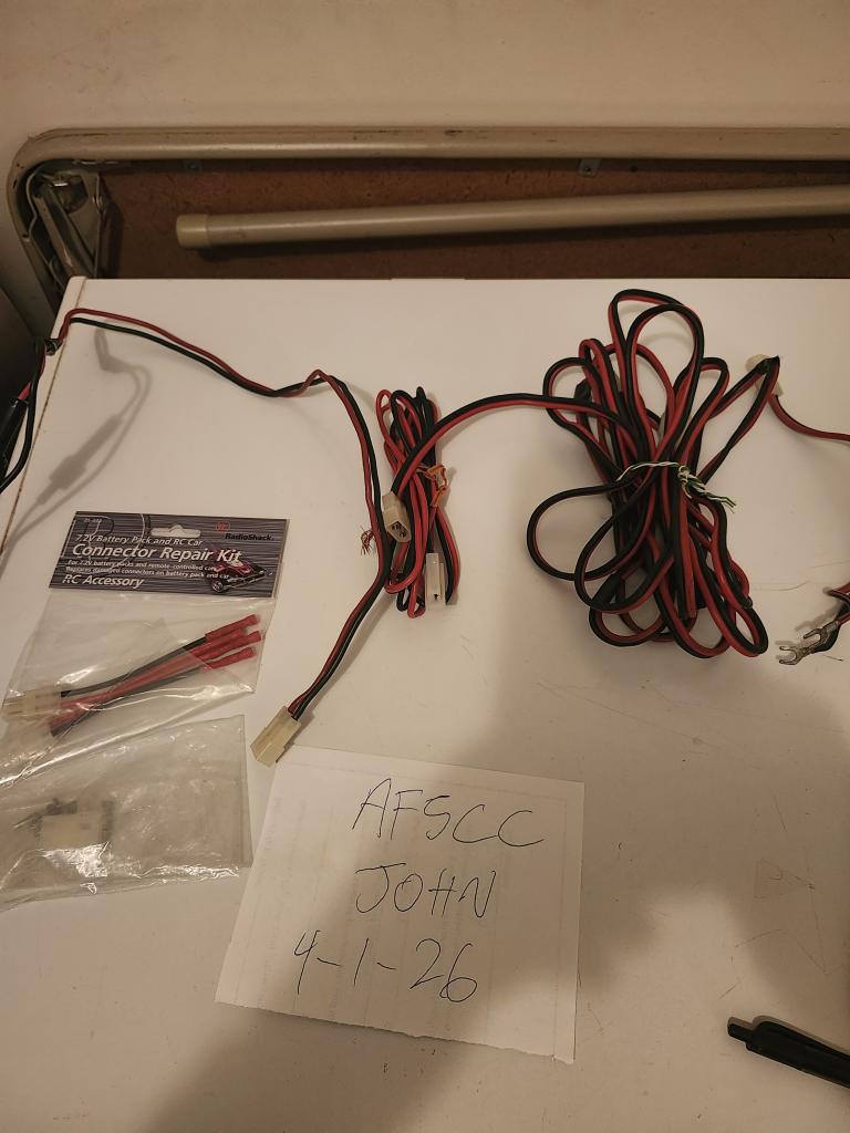 A set of VHF power cables being sold as a set to make shipping economical. 1st is a power cord with a T connector used on most VHF/UHF radios today. This one is 4 feet long made out of red and black zip cord.