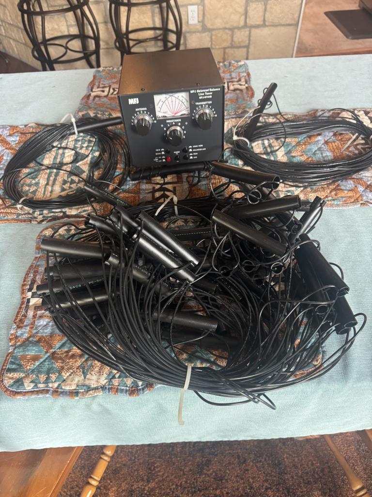 Have a like new MFJ-974HB this not the B model but the HB model it has 160M in it. Come with a brand new true ladder line antenna was told to be 80m. Antenna is made by w7fg out of Bartlesville Ok you can go on line and see antennas. Antenna and turner for 200.00 plus shipping 73’s