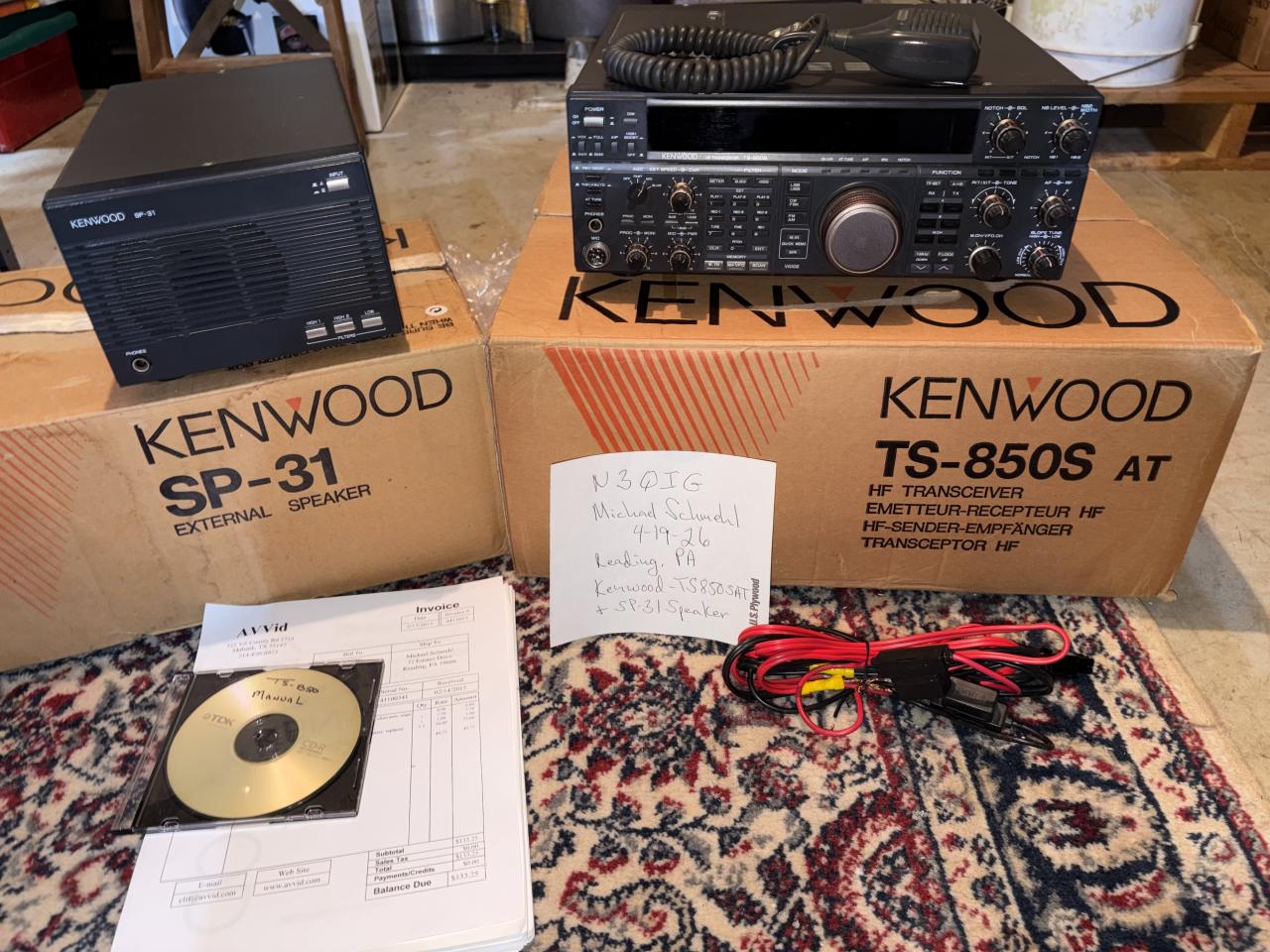 Here is my TS-850SAT and matching speaker. This is my backup radio, and a have a recent video of it in operation which I’d be happy to share. The radio was gone over by master Kenwood technician Clif Holland before his passing, and I have his invoice. I REALLY don’t want to ship these items, and the packing/shipping costs from the local UPS shipping center is ESTIMATED at $200.