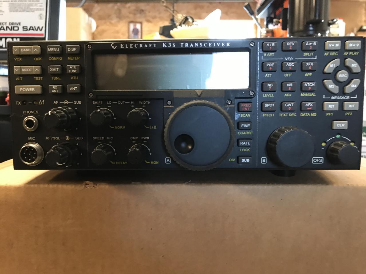 Elecraft K3S, dual receive.1.8, 2.4, 2.8, 6, 13mhz filters in main receiver, 1.8, 2.4, 2.8, 13mhz filters in secondary. Internal antenna tuner. No known issues. Was my main radio until I bought a K4D. Nice radio. $3000, shipped and insured. USA only. More pics available. Email me for them. Thanks. Vern