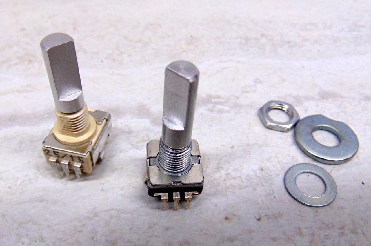 BRAND NEW unused equivalent replacement type . The shafts are the same length as is the pin-out. You just have to add a spacer washer, which is also included. The original TenTec part is on the left (ivory color) and the replacement is on the right in the photo. More photos available. These are NOT for the Ten Tec Jupiter, RX-350, etc. See my other ad here on QTH for those. $18 each plus shipping. Thanks-Kirk KI4RK