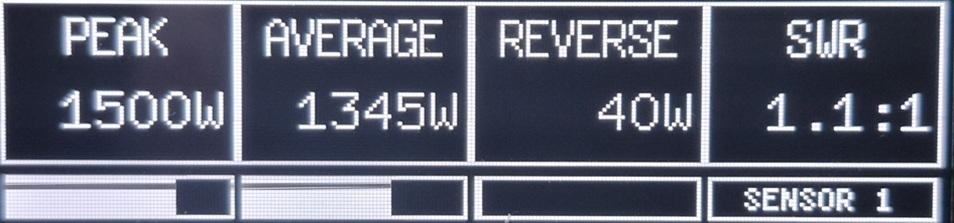 Live PEAK, AVERAGE, REVERSE power and SWR on the display.
