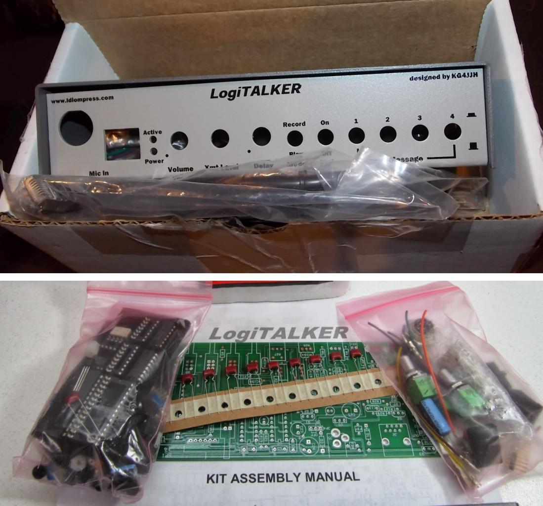 For Sale: Idiom Press LogiTalker DVK Unbuilt kit. No Surface Mount Parts, all thru-hole soldering, ICs in sockets! The LogiTalker uses the HK-828 voice chip. It uses either 3.2 or 4 Khz bandwidth depending on 4 or 2 memories, plenty for SSB voice! Four or 2 memories selectable by switch on rear panel. Two Mic connectors on front panel. More photos and manual available by email. $65 Shipped Priority Mail, PayPal OK.