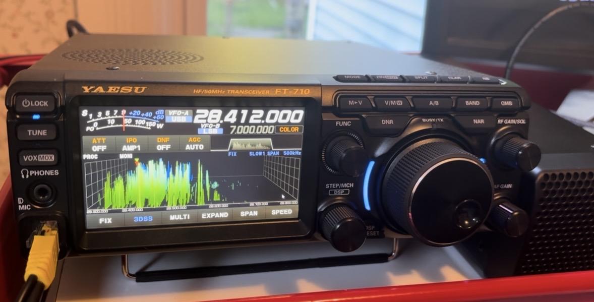 I have a Yaesu FT-710 AESS transceiver for sale in very good condition. I bought it about 15 months ago from DX Engineering in Ohio. It has not been modified in any way . No issues with it . I bought a Flex 8400 a few months ago and have not found a need to have two HF radios . It is the version of the 710 that includes a separate speaker that can be attached to the side of the radio for enhanced speaker audio. I found it not as good as attaching my own bookshelves speakers and thus don't use the AESS speaker. I misplaced the rubber grommet that attaches the speaker to the radio, so it comes without those. Radio used in a non-smoking environment. Never used mobile. Mostly used CW mode. Original box. Price = $710 plus shipping from NY 14063. I am happy to Facetime with the radio to demo it . I am good via QRZ ,